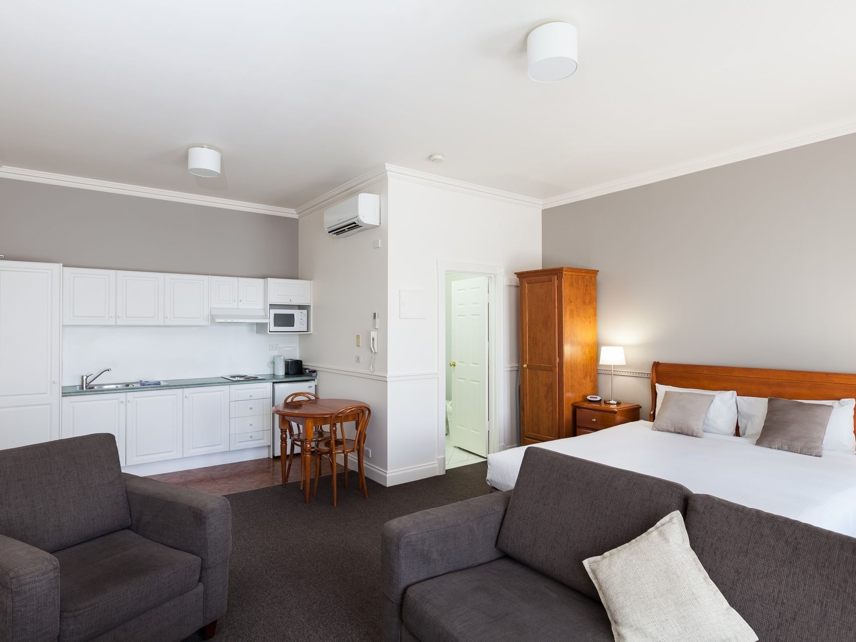 These 35 square metre fully self-contained one bedroom apartments are spacious, functional and can sleep up to 3 people.